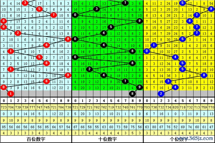 百位分析:百位最近9期出号:9-6-1-5-6-1-9-6-0,奖号大小比为6:3,奇偶比为5:4,012路比为6:2:1,本期百位参考号码139。