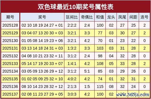 彩球第2025138期双色球奖号属性分析